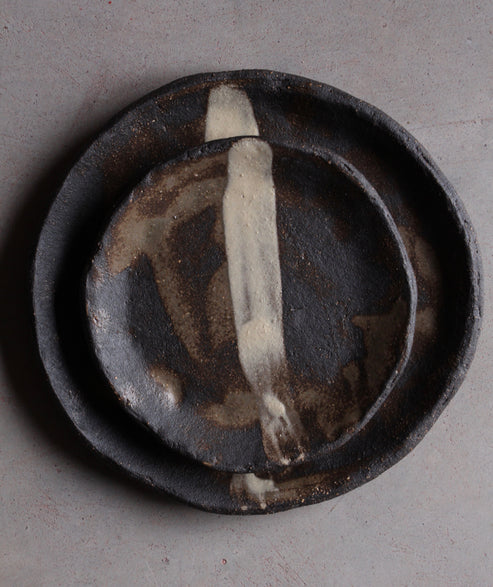 ÉCONOMISER [pourcentage]Ensemble d'assiettes à salade/dessert en grès noir rayé