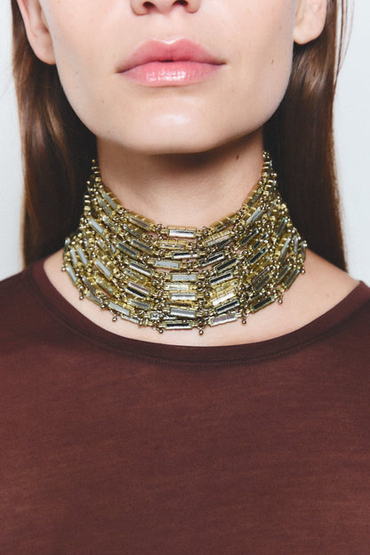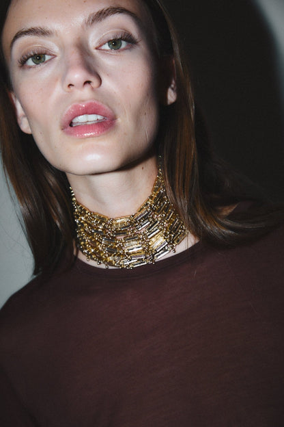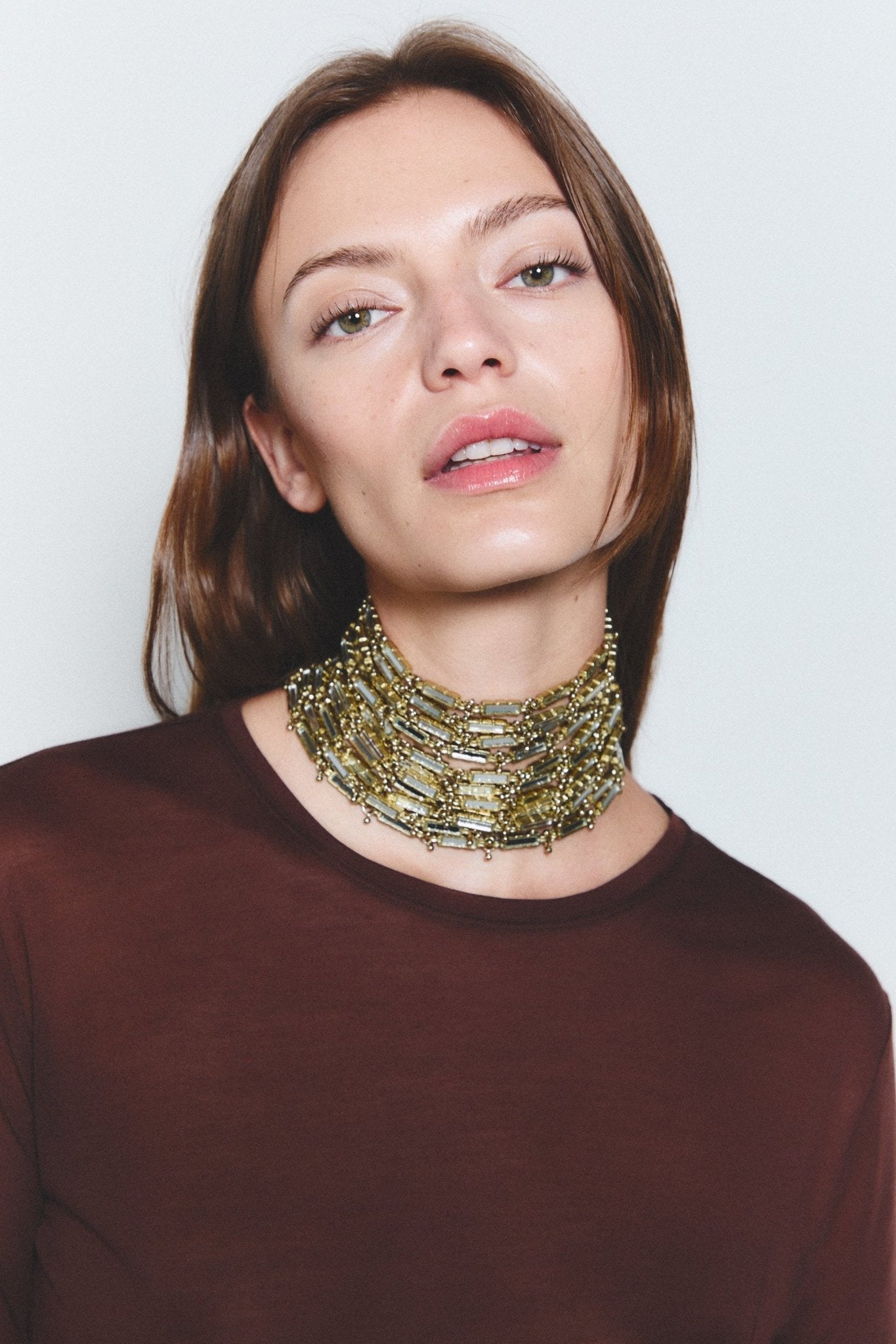 Estructura flexible se adapta al cuello. Es una pieza llamativa, sofisticada y versátil: perfecta para elevar cualquier look.