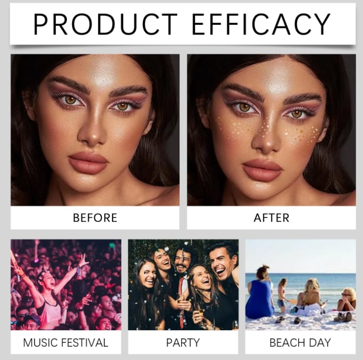 【Hassle-Free Application】: Designed for ease of use, these Glitter Freckles Face Tattoos can be applied seamlessly without the need for professional makeup skills.