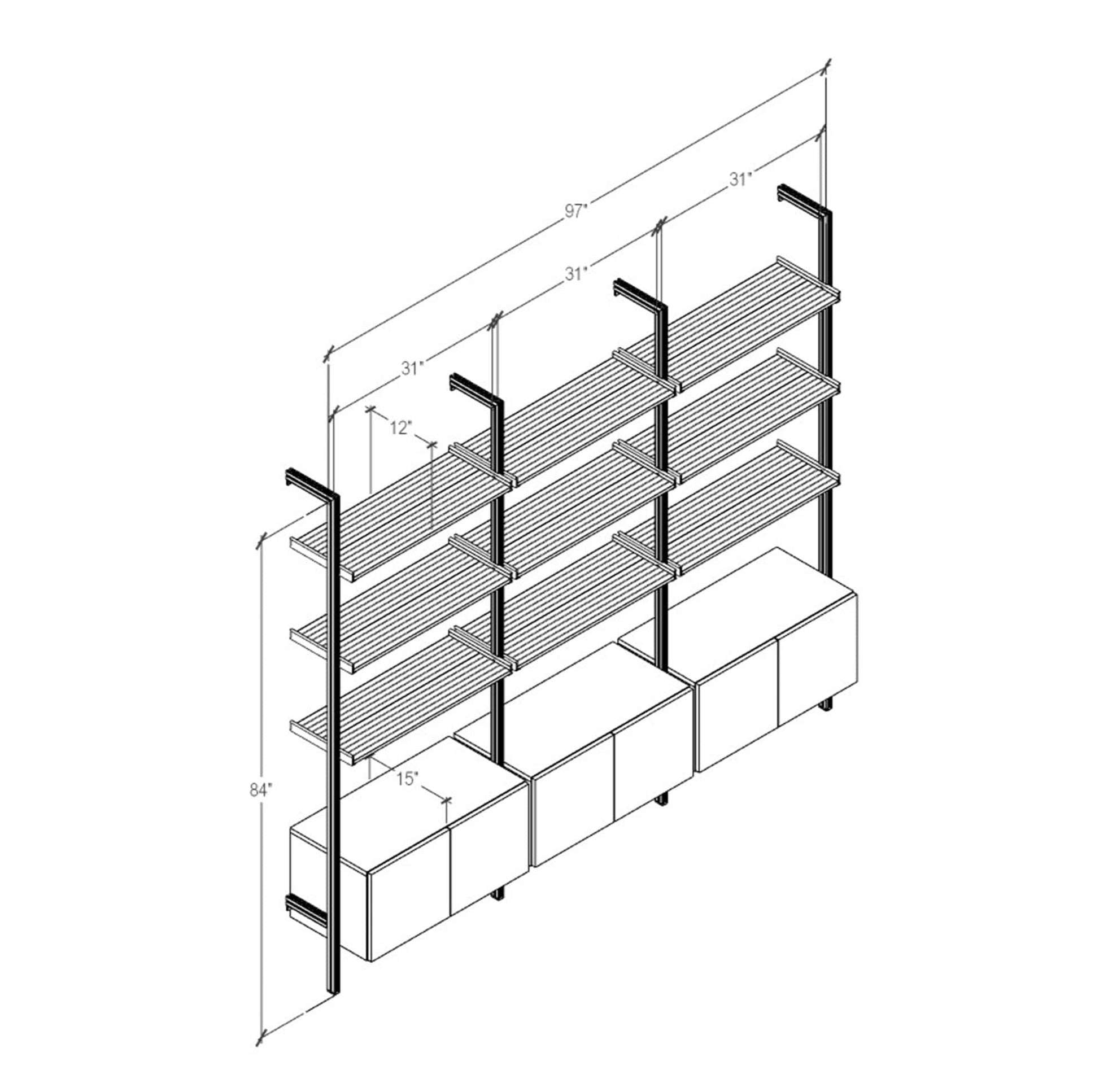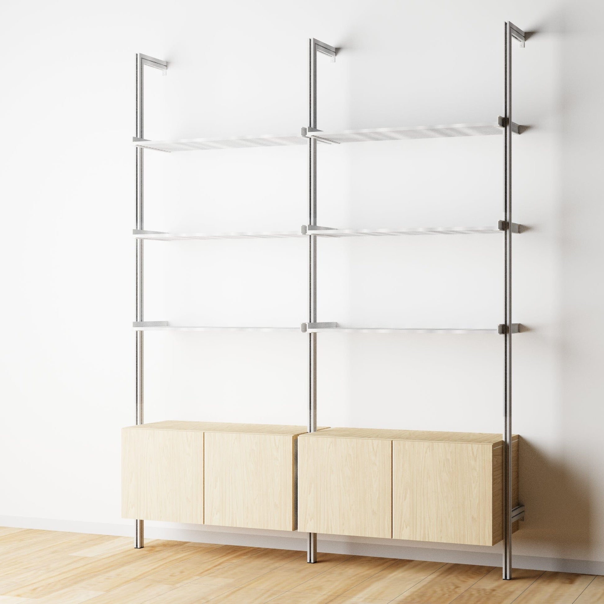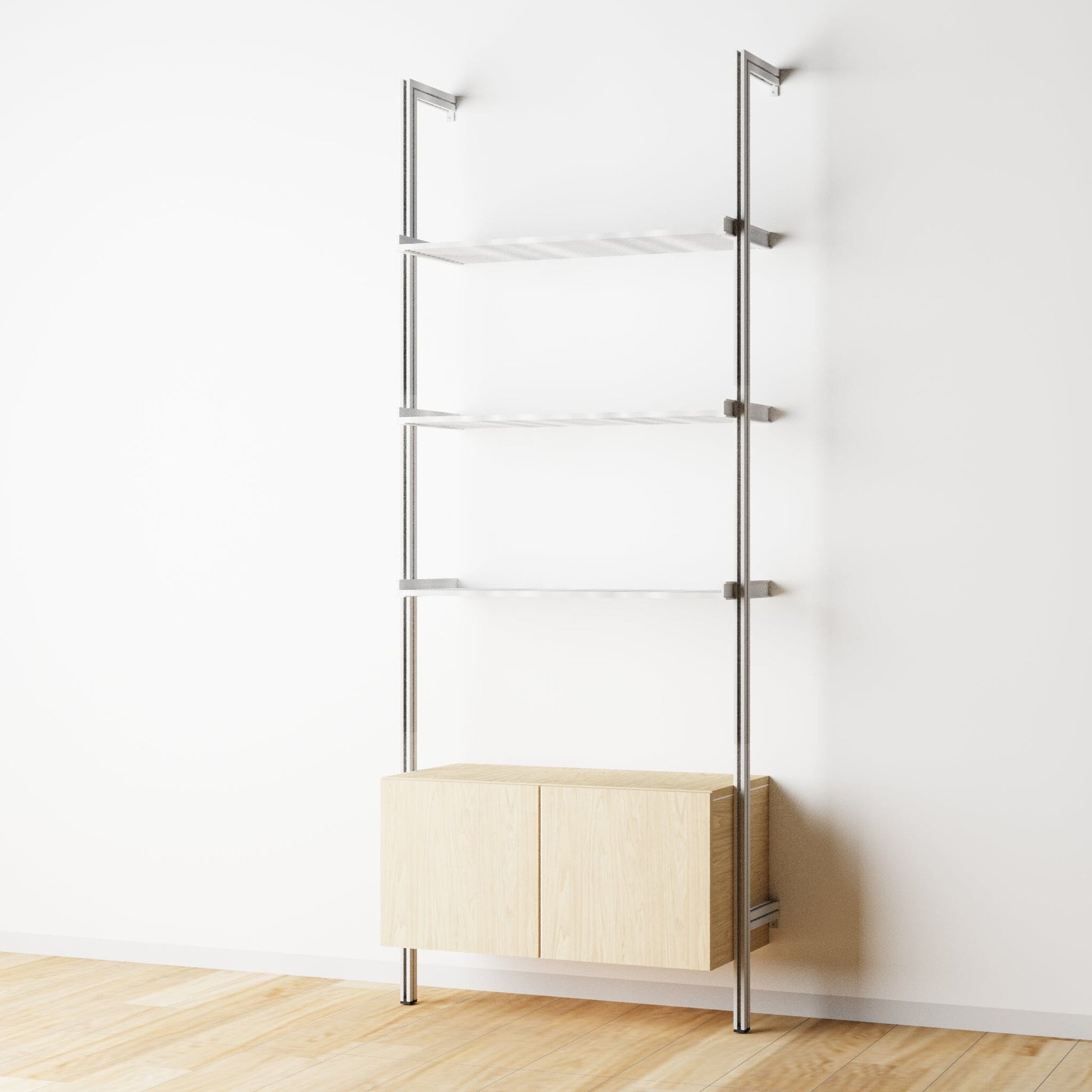 Modular Shelving Units - Aluminum Shelves and Wood Cabinets