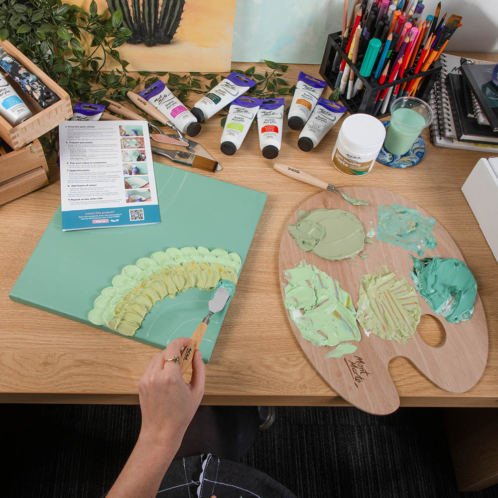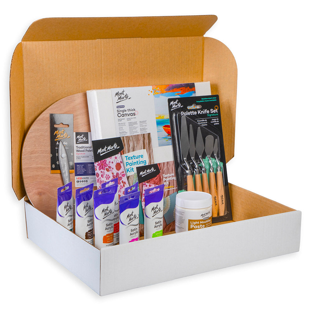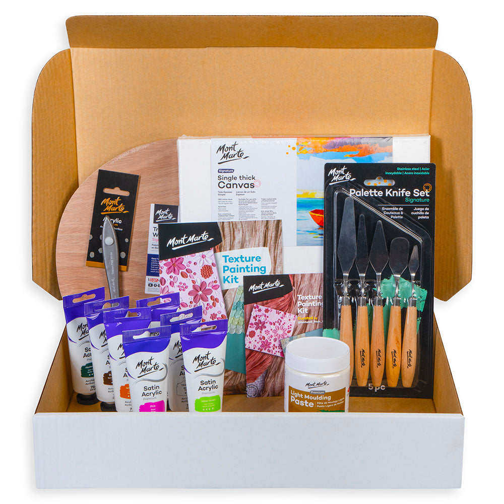 Ready to jump into a fun texture art project? This canvas painting kit for beginners has everything you need to create bold, textured pieces at home! Inside, you’ll find acrylic paints, brushes, a canvas, and easy step-by-step instructions from Aussie artist Brittany Moscatt (@textured_from_tas)