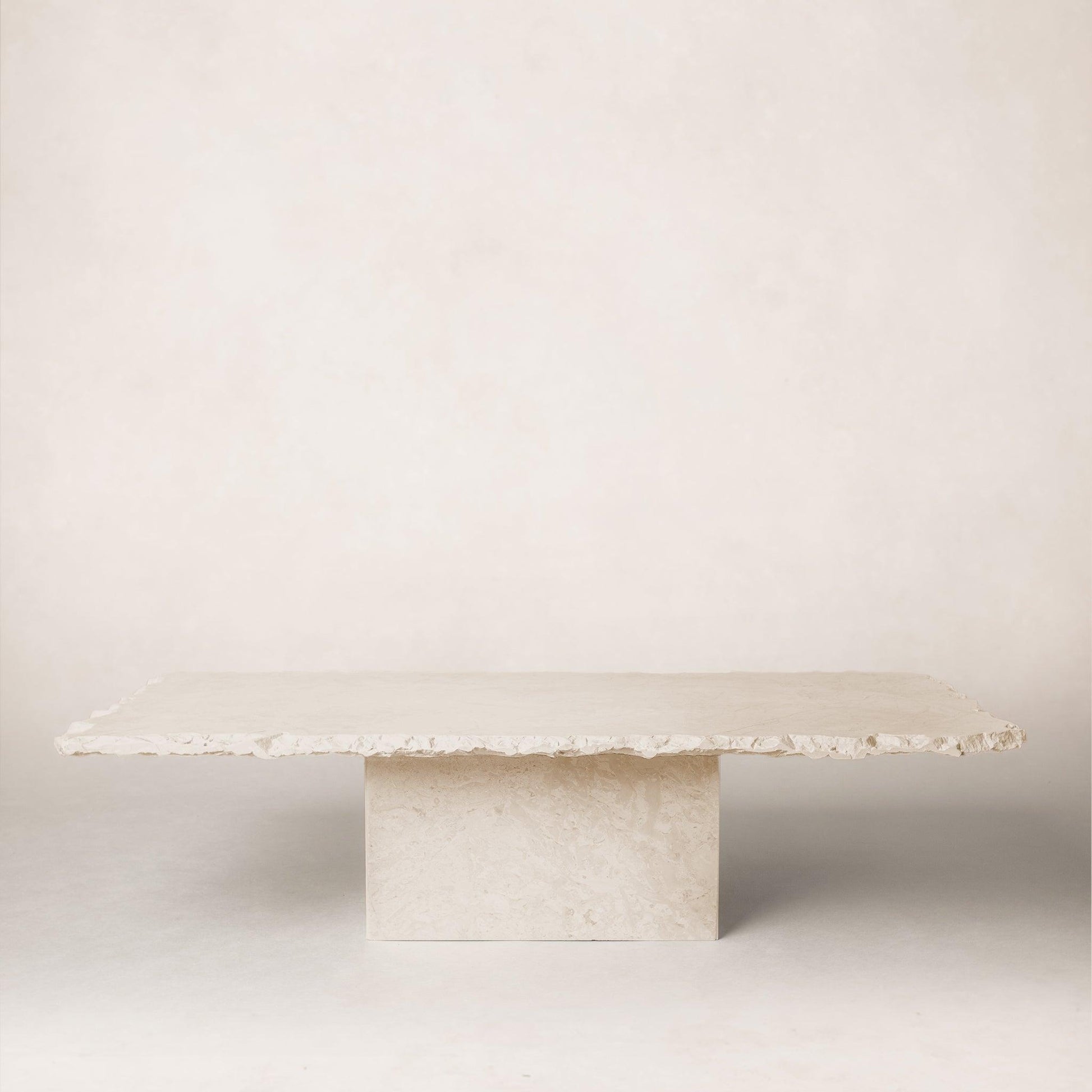 The Sofita Marble Coffee Table is given a matte finish and a chipped, living edge for an organic look. The Sofita Marble, found in Italy and Turkey, will vary in appearance displaying minimal veining. This statement piece is an elegant and timeless addition to any space and the showstopper your guests will be sure to notice.
