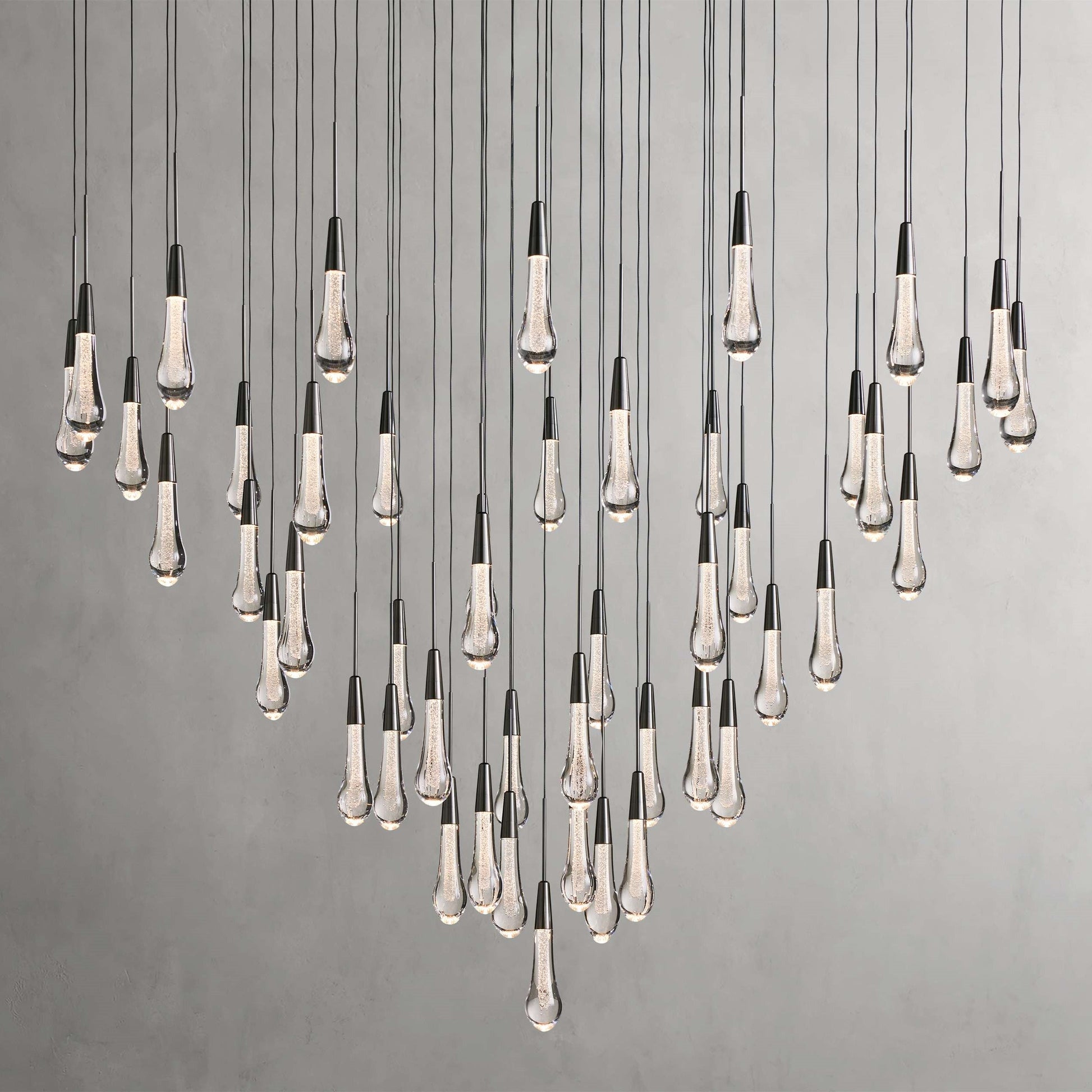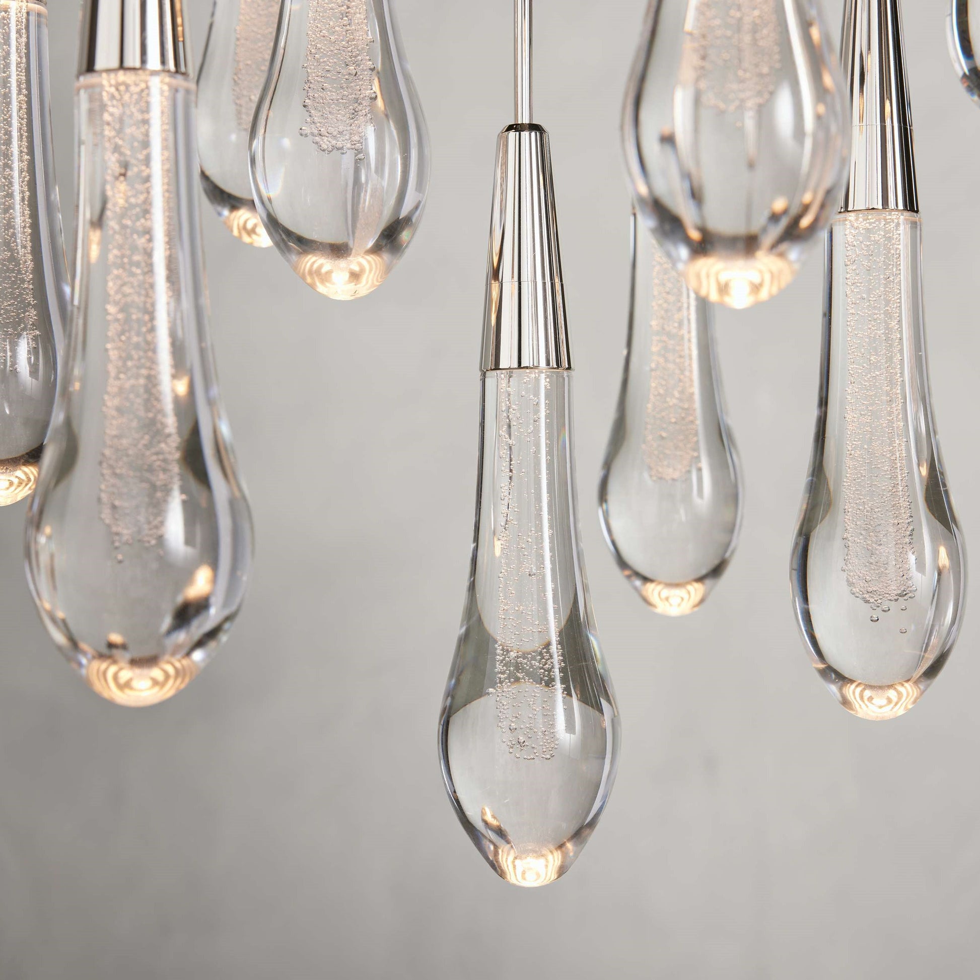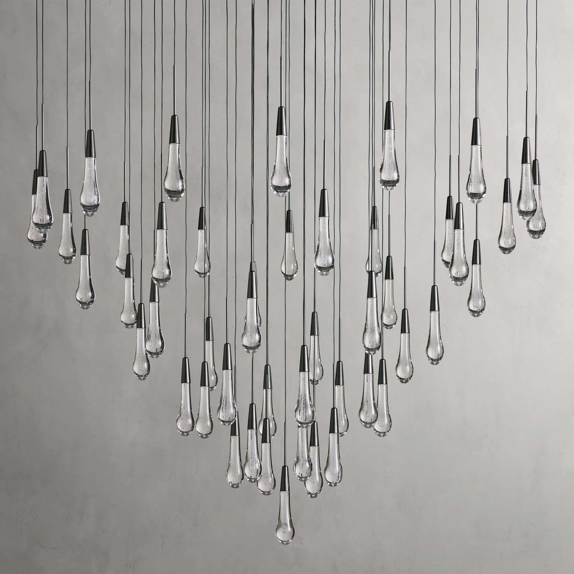 Featuring adjustable black PVC cords cascading into integrated LED lights handcrafted from seeded glass, our Soltaire Lighting Collection mimics the look of a fallen raindrop.