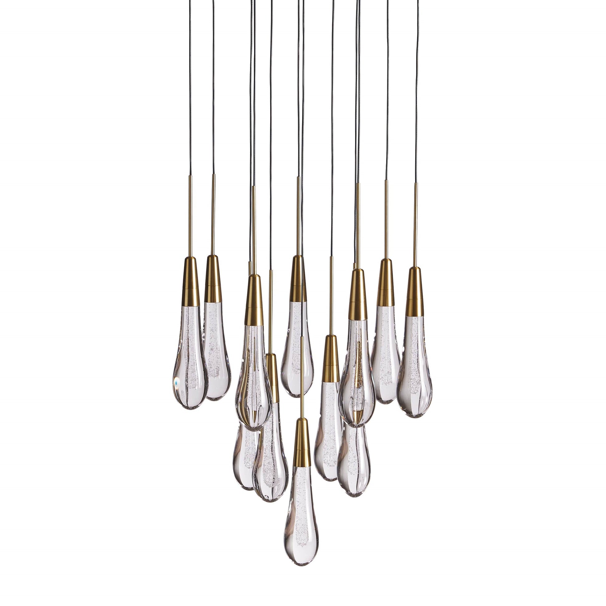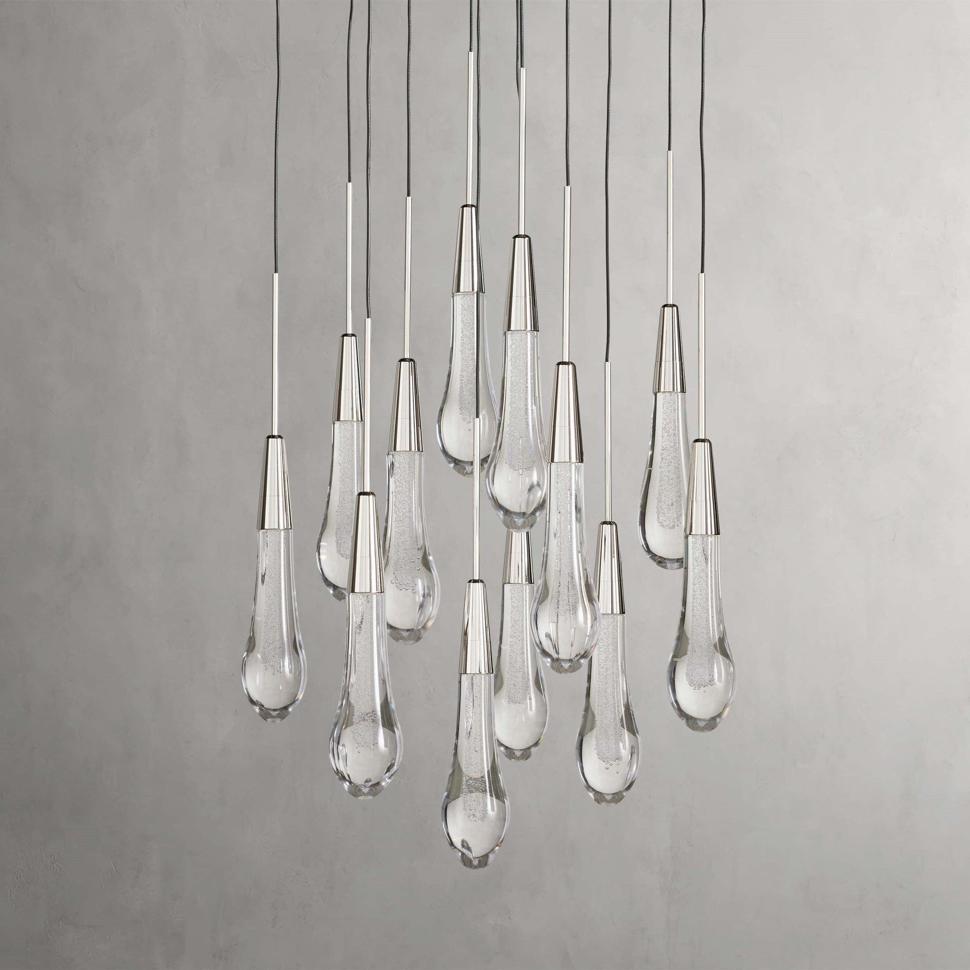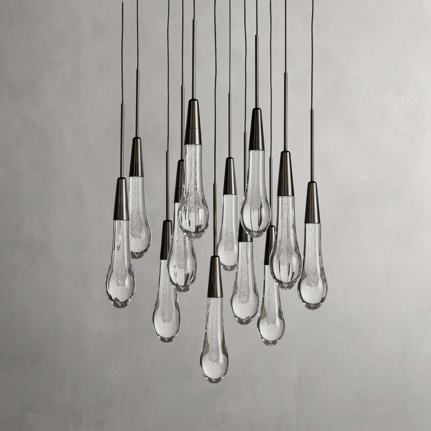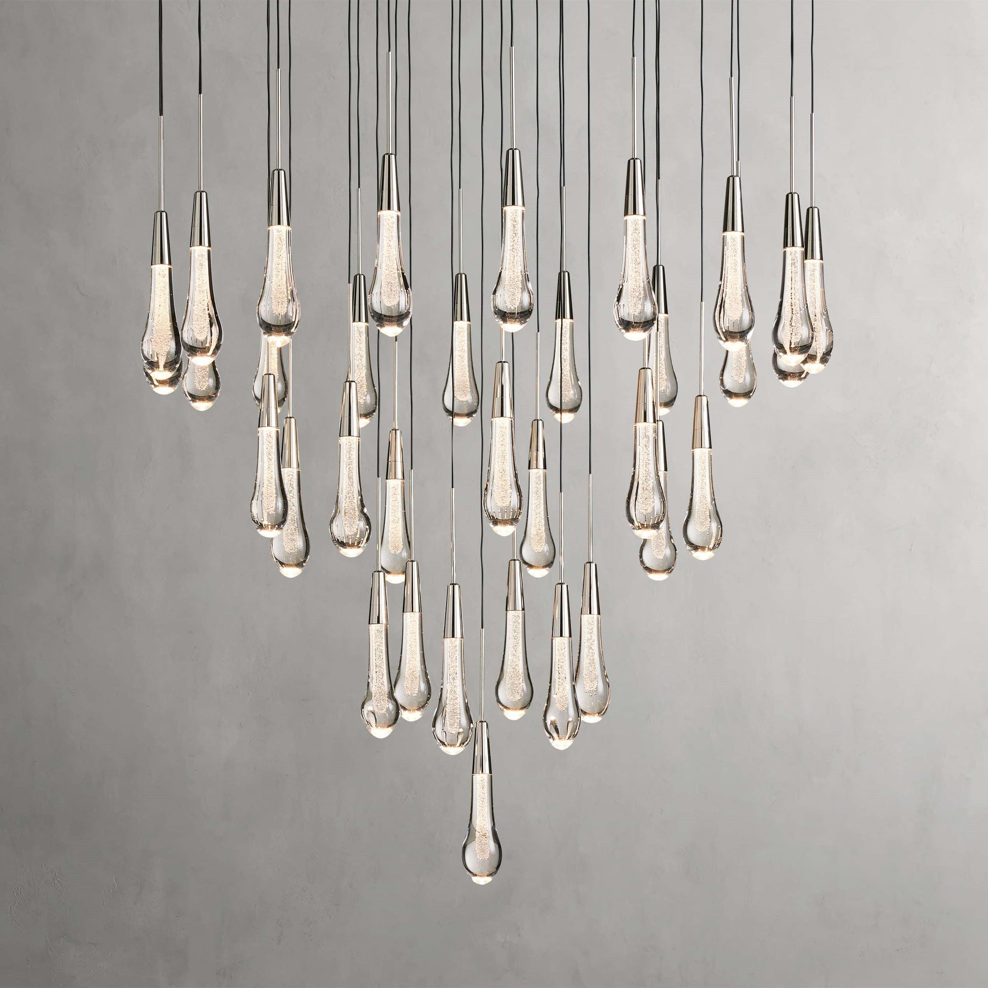 Featuring adjustable black PVC cords cascading into integrated LED lights handcrafted from seeded glass, our Soltaire Lighting Collection mimics the look of a fallen raindrop.