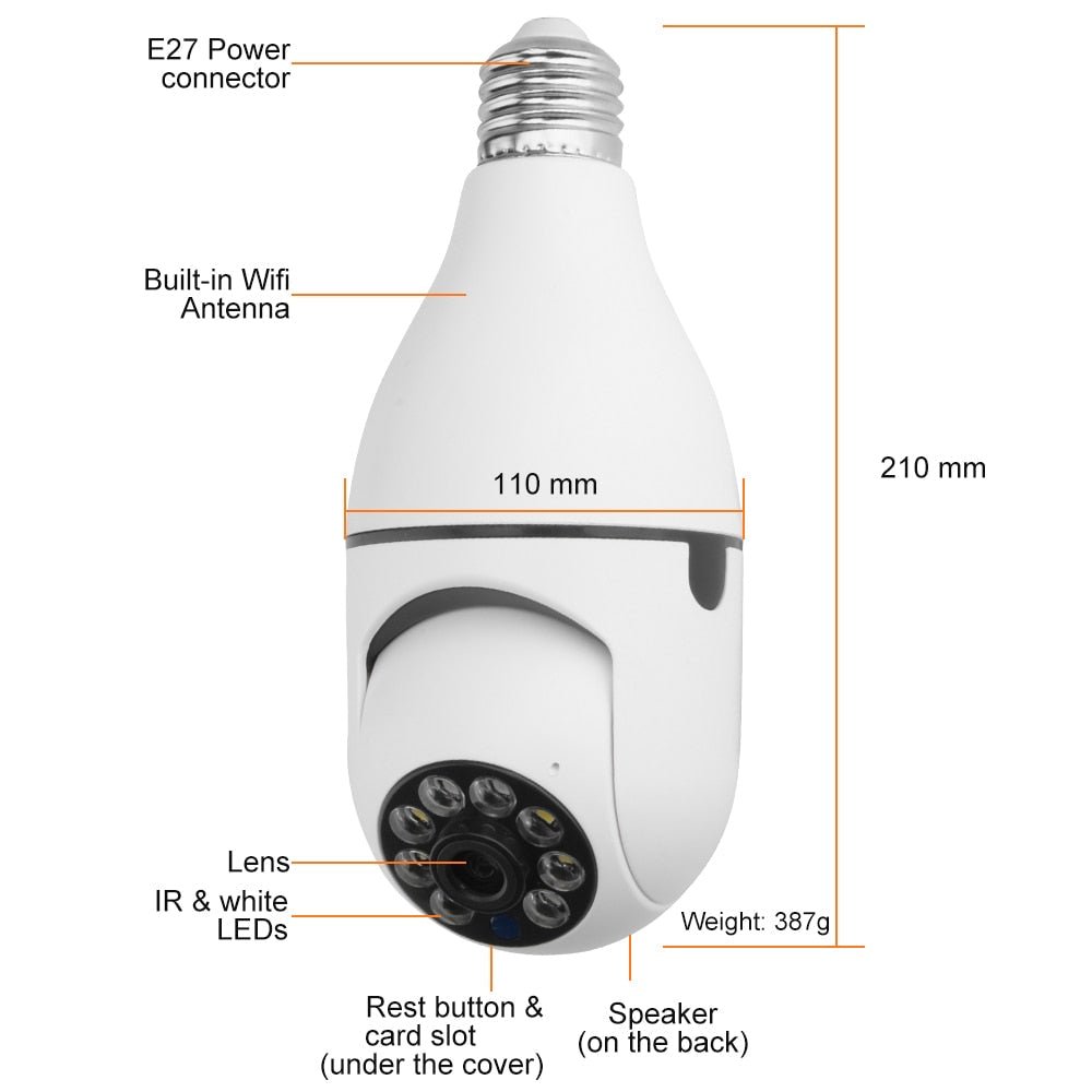 Built-in microphone and speaker, the light bulb security camera can have a conversation between you and your visitor. If you have any questions, please contact us. We provide lifetime technical support and services.